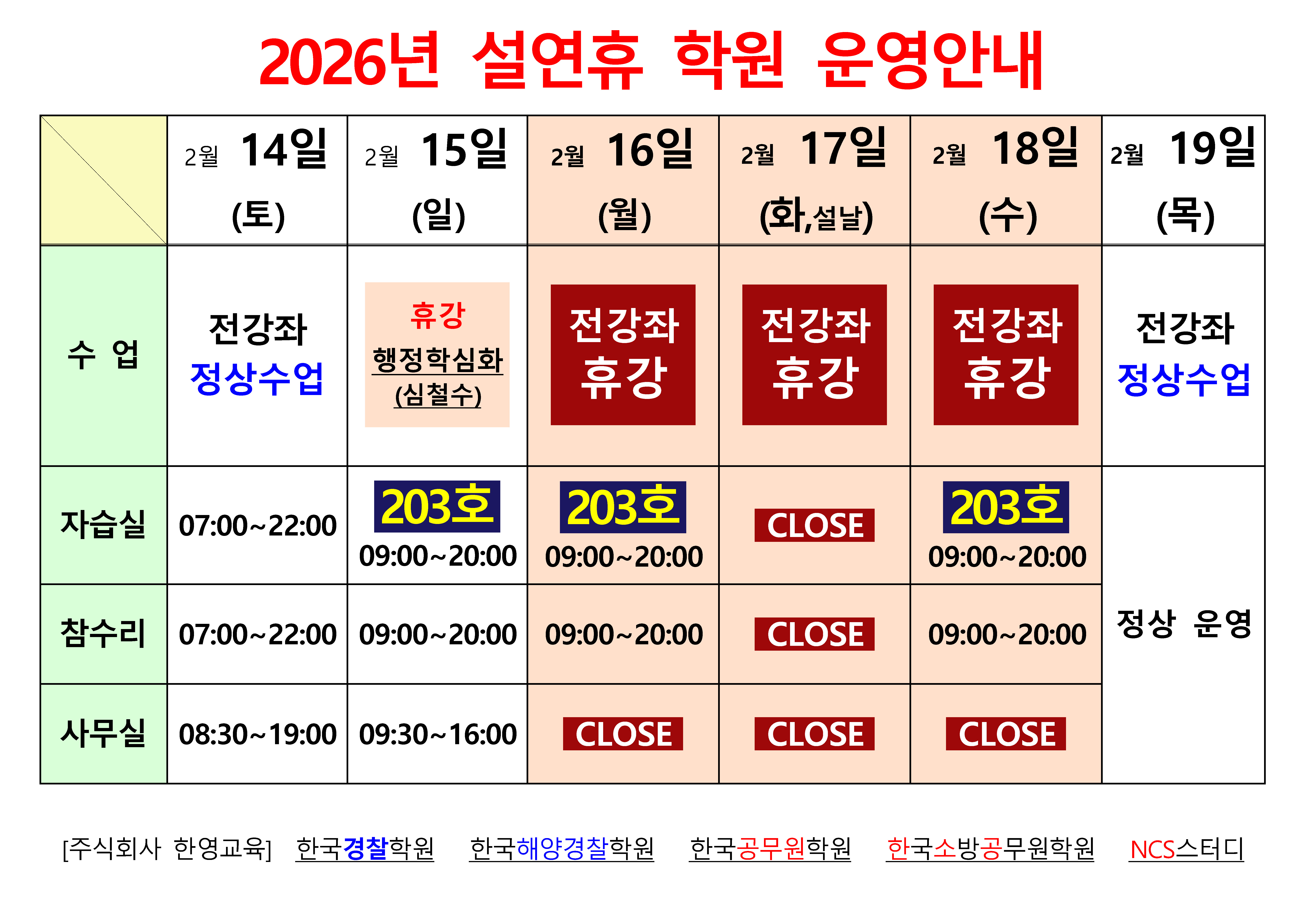 설 연휴 학원 운영 안내
