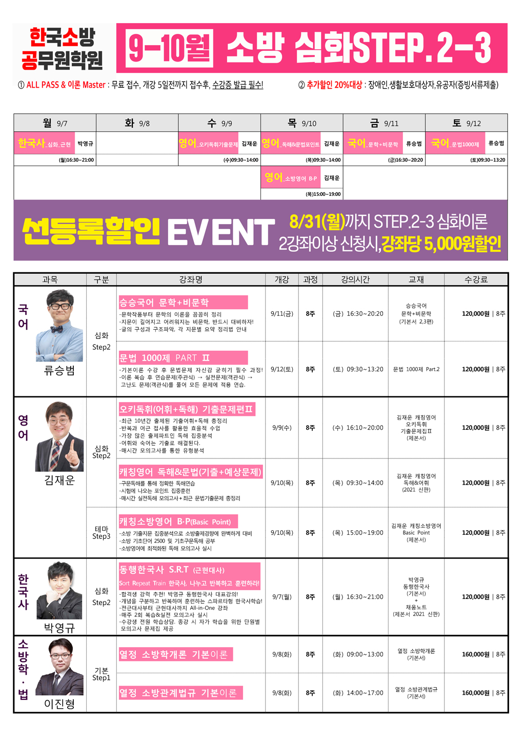 선등록 EVENT! 8/31(월)까지 2강좌이상 등록시 강좌별 5000원 할인!