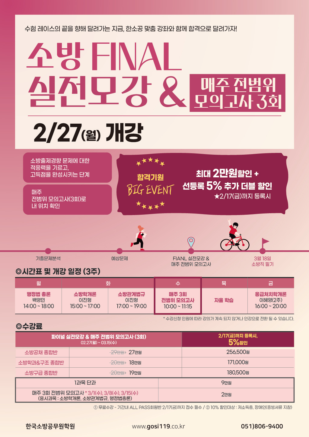 | [2월]▣ 소방문제풀이 Final 소방공무원 Final실전모강&매주 모의고사 2/27(월)개강!▣ | · 작성자 한소공 |