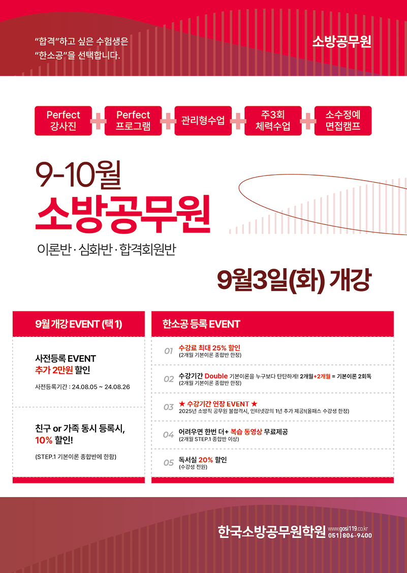 | [9-10월] 소방공무원 신규반 강좌안내 | · 작성자 한소공 |