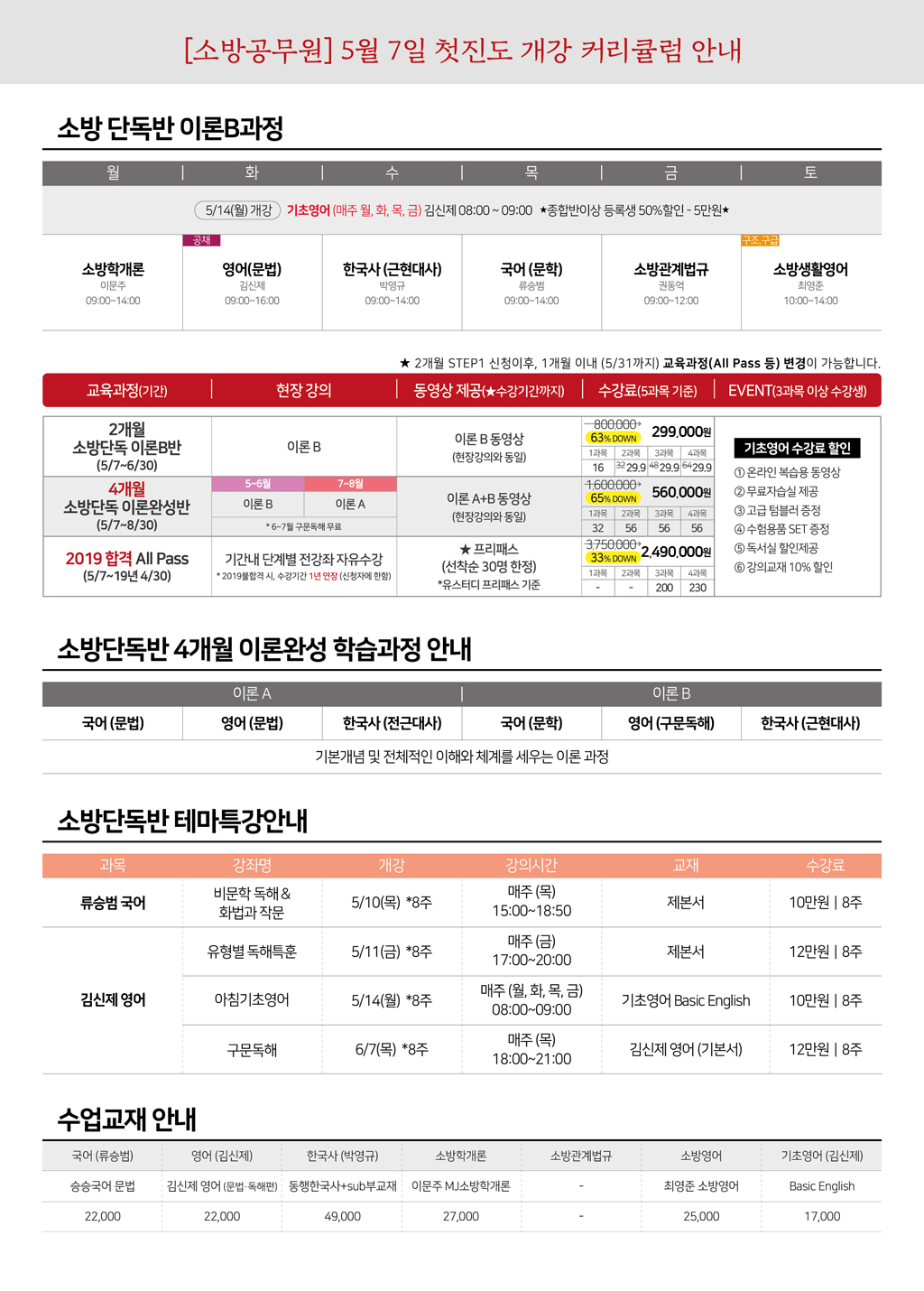 [5~6월] 소방단독반 특강 *류승범 국어 5/10개강 *김신제 영어 5/11개강..