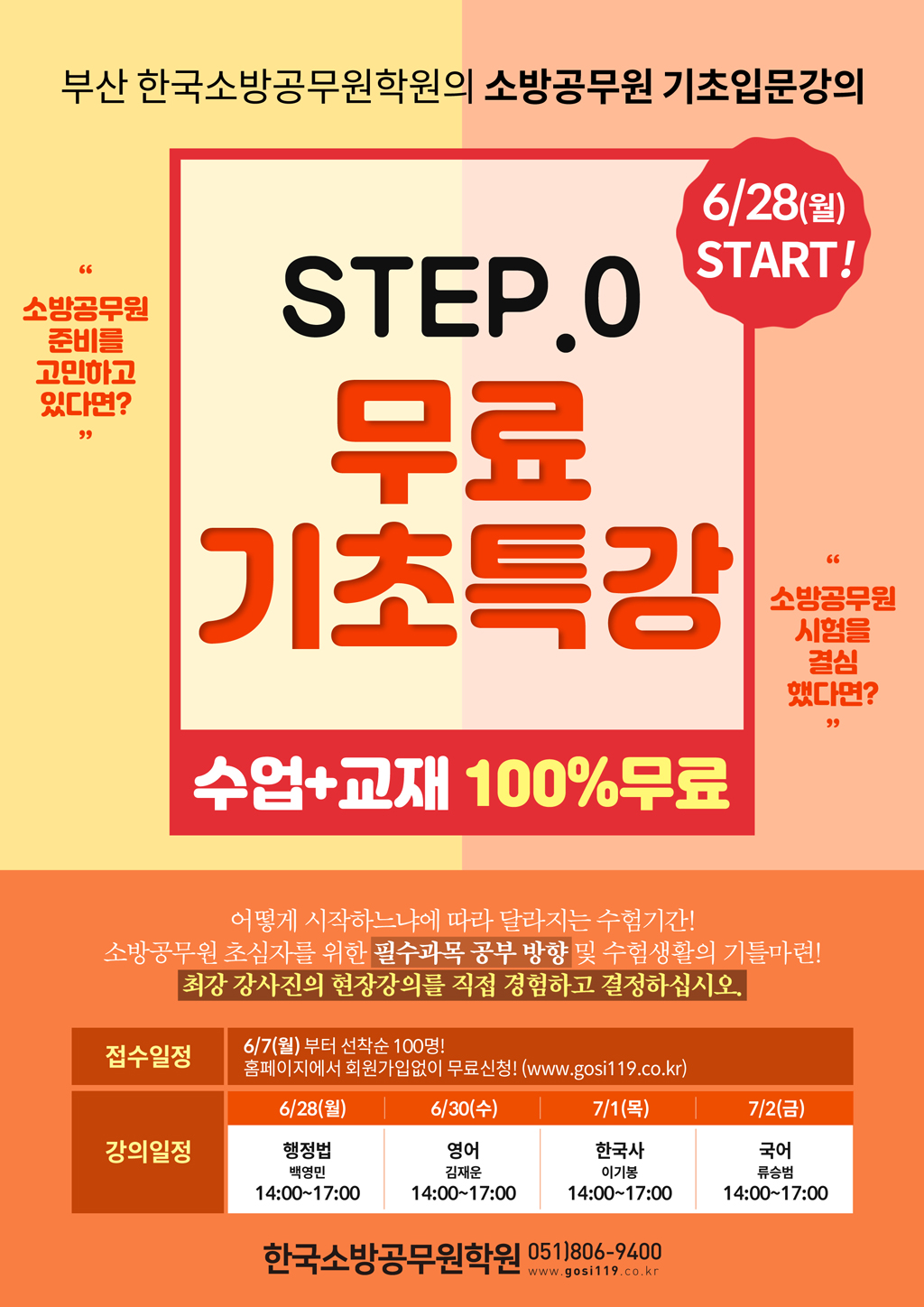 소방공무원 공부를 준비중이라면?개편된 2022년 소방공무원시험준비를 위해 Upgrade 된최강 강사진의 강의로 미리 공부하자!소방공무원 초시생을 위한STEP.0 기초특강 6/28(월) START!