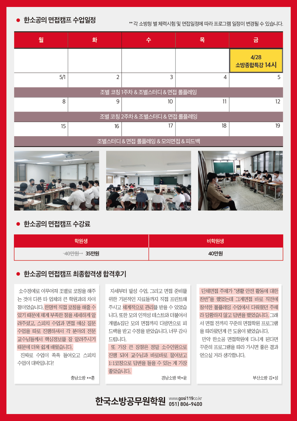 [면접캠프] 2023년 소방최종합격! 소수정예 면접캠프 4/28(금)개강!