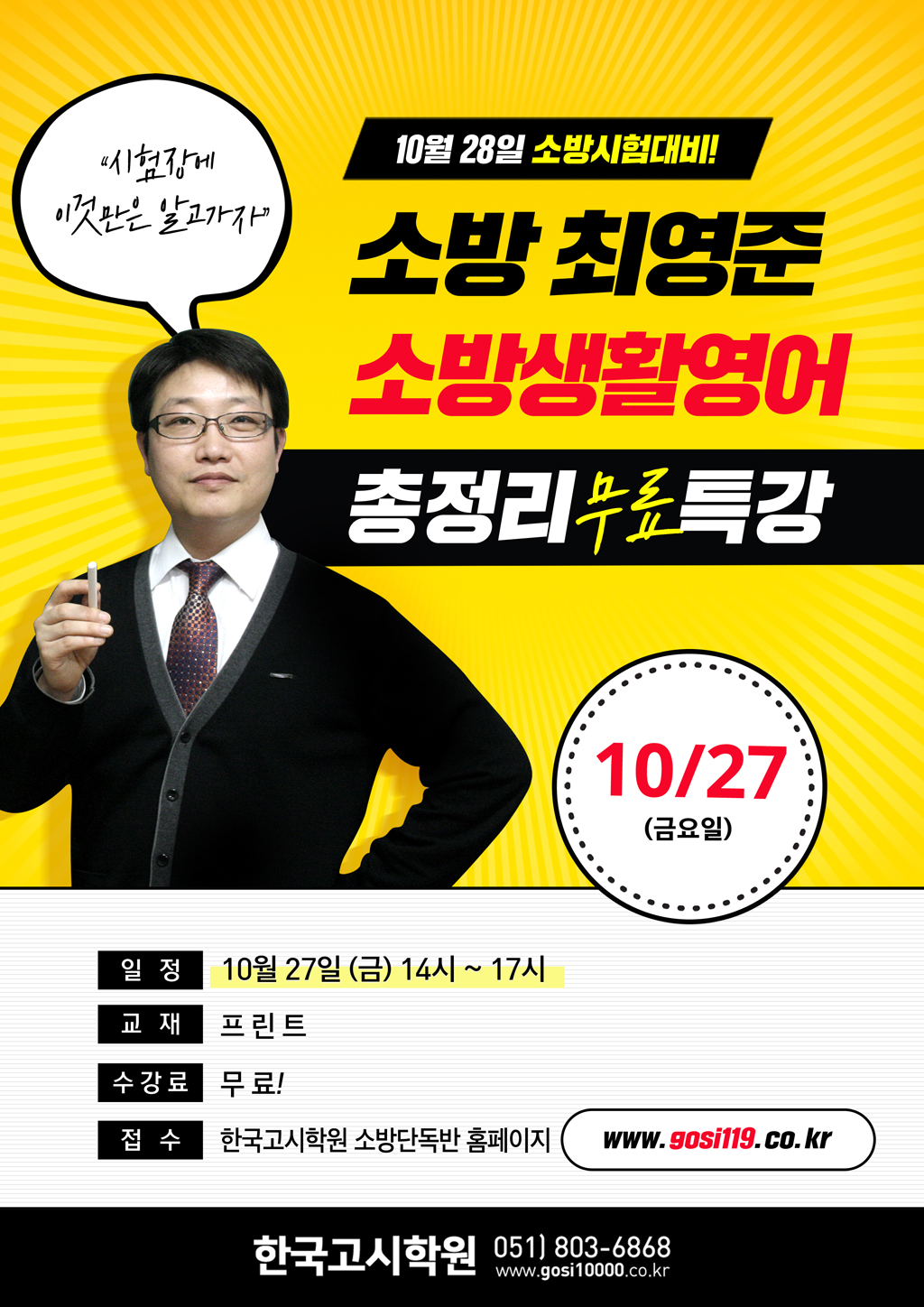 | [무료특강] 최영준 소방생활영어 총정리 특강(소방하반기채용대비 ) 10/27 금 | · 작성자 한소공 |