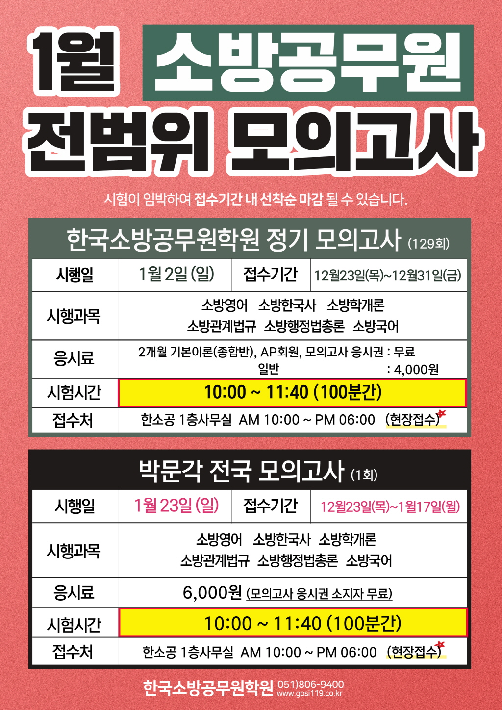 [11월] 한국소방공무원학원 정기 모의고사 & 박문각 전국 모의고사 시행..